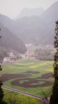 In Xingyi, Guizhou, amidst the magnificent mountains and waters of Wanfenglin, lies a precious gift granted by heaven and earth—a "Fu" character naturally outlined by the karst peak forest. Looking from a height, thousands of peaks stretch like a sea. From a certain angle, several green peaks cleverly connect, and the cursive "Fu" character vividly appears between heaven and earth. This is not man-made carving but a miracle created by the mountain shapes and natural light and shadow together. It has lain quietly for millions of years, waiting for a destined person to encounter this blessing in the morning or evening light. At the foot of the mountain, the Buyi people of Nahui Village have guarded this blessing for generations. The Bagua fields curve naturally, with rapeseed flowers and rice waves cycling through the seasons. Here, "Fu" is the steadiness of farming in the fields, the rich aroma in the Eight Big Bowls feast, and the hometown feelings in the rustling leaves. Come, quietly seek it at the viewing platform, ride a bike through the ridges, and stay in a guesthouse where opening the window reveals a Wanfenglin painting. When the mountain breeze brushes your face, you will understand—the "Fu" of Wanfenglin is not just a mountain shape wonder, but the true flavor of life in harmony between heaven, earth, and people. This blessing from the mountains and waters of Southwest Guizhou is waiting for you to receive it in person.