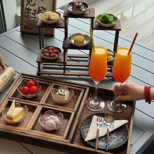 In Yangshuo, there are always some scenic spots reserved for those who truly understand them. Lijing Resort Hotel is such a hidden gem that perfectly blends the charm of mountains and rivers with modern vacation comforts. Upon entering the hotel, the New Chinese architectural style complements the karst peaks beautifully. The plaza in front of the lobby is picture-perfect from every angle (Image 1). The terraces of the guest rooms serve as private viewing platforms; gazing into the distance, the lush green mountains bring a sense of serenity. With a cup of tea in hand, one can spend the entire afternoon in this little paradise (Image 2).For those looking to experience Yangshuo on a culinary level, the hotel's exquisite afternoon tea is a must. The clever fusion of Chinese snacks and Western desserts, paired with two specially crafted drinks, creates a full ambiance whether it's a gathering with friends or a romantic date (Image 3).The hotel also offers many Instagram-worthy spots that are full of surprises. The art wall filled with Yangshuo dialect (Images 4 and 5) is a playful expression of local culture, and the romantic wall painting that reads 'I knew you would come, so I waited' (Image 6) makes every visitor feel warmly welcomed. The most stunning is the rooftop water deck, where sitting on the bamboo raft-shaped platform and framing yourself with the surrounding landscape makes one feel like the protagonist of a Guilin landscape painting. Even the cormorants nearby become part of the unique scenery (Images 7, 8, 9, and 10).At Lijing, there is no need to rush between tourist attractions. With mountains visible from your window and scenic views at every turn, every corner hides the poetry and romance of Yangshuo. Come here to let the landscapes soothe your body and mind and to restore the true essence of vacation.#陽朔旅遊 #陽朔山水