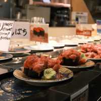 A conveyor belt sushi restaurant with a nice atmosphere 🍣 but the price is a bit expensive