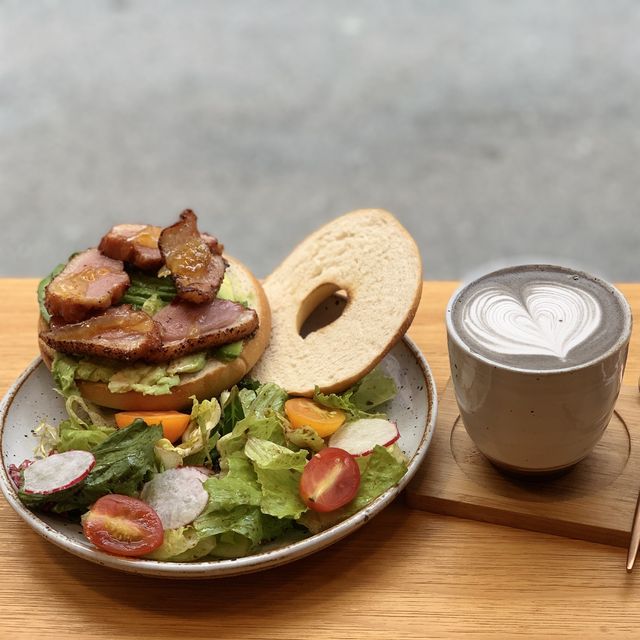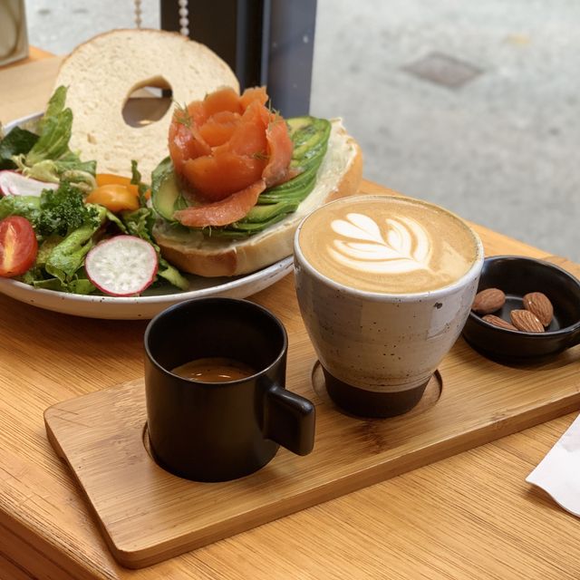 I always knew there was this Cafe in Yuen Long, but I was afraid of crowds during the holidays, because I knew there were not many seats, so I finally had the opportunity to go to this place on weekdays. Went there at 2pm, and there were 2 shops on both sides, with several seats on both sides. You had to wait for a seat that day and it took almost an hour after the tickets were distributed, so walked around for a while before the staff would call and ask you to come back. Staples $78 1. Bagel🥯 + Peach Smoked Duck Breast 2. Bagel🥯 + smoked salmon The main portions are quite plentiful, the salads are fresh, either with salad oil or with paper sauce, very refreshing. Bagel is very smoky and fragrant, which is my preferred mouthfeel, the bun will be served with avocado, in addition you can choose other ingredients. The smoked salmon was fresh, silent yet, and the peach smoked duck breast still felt warm when it was served! Overall very tasty, and comfortable! However, the table is relatively small, narrower after putting drinks and food, it is more inconvenient to cut a bun, be careful! The portion of the food is large enough, every bite of filling, I still reminisce at this moment Drinks $38 1. Sesame Latte 2. cappuccino Sesame Latte, very hot enough, when I took it up it smelled very fragrant sesame, very thick, and very smooth! The coffee was chosen by a friend, and he said it was 10% fragrant. Hot drinks are served with a few almonds, which feels more attentive! dessert Hojicha cheese cake Forget the price Price per person - $120 Rating - 8/10 #local tour #cafe #romantic date restaurant #foodie #picnic spot #I miss #afternoon tea information #Hong Kong places to go #summer food recommendations #summer places to go