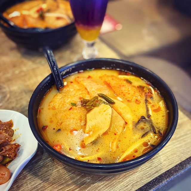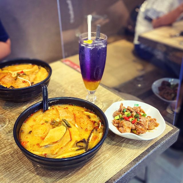 Sam has a new initiative, so I have to invite my friends who are also fans of Sam to try something new😋 🍜Snail Sour Soup Pork Skin Snail Rice Noodles The sweet and sweet sea snail soup is added with crispy pickled asparagus and sour and spicy bean sprouts, even if you don't have to add extra spicy, it has enough sour and spicy flavor, every bite of the soup stimulates the taste buds; the spicy pork skin is thick, refreshing and seasoned, after absorbing the sour and spicy soup, it's really delicious😋 The snail slices are quite large, stewed and soft enough😋 Recommended for sour and spicy people👍🏻 🌶Pepper and sesame cold fish refreshing the belly The fish belly is very crispy, with the secret pepper and sesame sauce is very tasty😋 The spicy hand-patted cucumber at the bottom is even more refreshing😌 🍹 Pineapple Blue Butterfly Floral Specialty Drink The special drink is blended with pineapple and lime, and a uniquely colored plate of bean flowers and edible flowers are added as decoration #Tam Tai Sam Goh #Snail Soup Rice Noodles with Conch Slices and Spicy Pork Skin #Snail Sour #Fish Refreshing #Pineapple Blue Butterfly Floral Soda #hkfoodie #foodiehk #foodporn #instafood #instafoodie #foodstagram #hkfoodies #foodblog #hkfoodblog #hkfoodblogger #foodexplorer #hkfood #hkiger #hkiggirl #hkig #foodiesofinstagram #foodblogger #foodpics #foodgrams #foodies #foodie