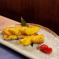 Today I went to Yuen Long with my friends for dinner. I saw the facade of this izakaya is very eye-catching. When I entered the restaurant, the Japanese decoration, the most eye-catching ceiling was full of 🍁 red leaves full of Japanese style ✦ Selected sashimi from Hokkaido Toro Japanese seaweed, sashimi, live northern oyster white shrimp The seaweed is sweet and sweet; the toro is full of fat; the sashimi is very thick; the live scallops are crispy and sweet; the white shrimp is tender; each sashimi is very fresh ✦ Matsutake crab shell grilled with squid slices The whole crab lid is stuffed with rich ingredients, colorful and salivating - there are quail eggs, matsutake crab paste, crab meat, crab seeds and spring onions. Every bite is very rich and full of freshness. ✦ Golden Dragon Roll Once served, it was very attractive, crispy fried shrimp head, shrimp paste full, golden crispy fried shrimp roll, both mouthfeel, taste is very rich. ✦ Yundan Tempura Small Roll Crispy seaweed wrapped in basil leaves, seaweed and sushi rice, crispy and fresh, not greasy, dipped in curry powder even more fragrant. ✦ Grilled Hiroshima oysters in seaweed sauce The oysters are large and thick, drizzled with a full seaweed juice, the savory flavor of the seaweed brings out the freshness of the oysters, and spinach to relieve the greasiness. ~ skewers ~ All skewers are grilled to order Homemade minced chicken stick skewers are crispy on the outside, tender and juicy on the inside, dipped in smooth egg yolk sauce, delicious; grilled white eel skewers are thick, crispy on the outside, rich in fish oil; grilled black pork asparagus skewers are thin pork wrapped in fresh asparagus to neutralize greasiness; grilled chicken kidney skewers are fresh and tender, delicious ~ ✦ Grilled beef tongue Rich black pepper seasoning, rich beef flavor, refreshing and bouncy, great ~ ✦ Okinawa Black Sugar Grilled Pineapple The sweetness of black sugar, the sweetness of pineapple, sweet and juicy, extremely watery, can relieve greasiness, excellent fruit after meals ~ Tenkan Izakaya | @tj.izakaya 📍G/F, 79 & 81 Education Road, Yuen Long ☎️(+852) 34871160 •♡•♡•♡•♡•♡•♡•♡•♡•♡•♡•♡•♡• #Tiankanizakaya #Japanesefood #Japanesefood #Japaneseculture #sashimi #sushi #karoyaki #skewers #HongKongfood #HongKongphoto #HongKongEatDrinkFun #HongKongWhatToEat #YuenLongFood #YuenLong #HongKong