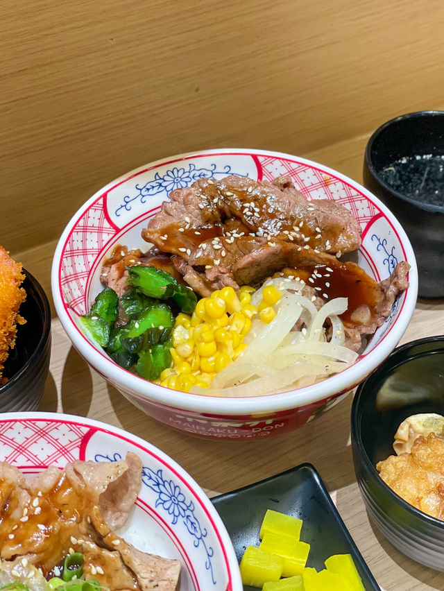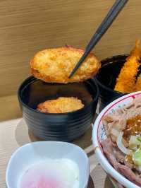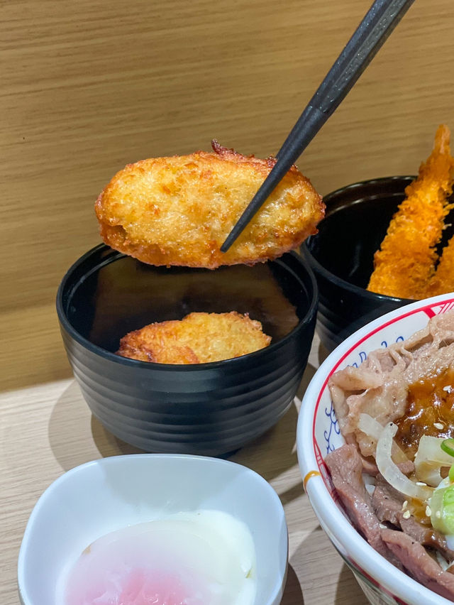 Finally, there's an affordable beef donburi restaurant in Yuen Long. This one isn't from Japan, but a new local establishment. Personally, I think the flavor is more suited to Hong Kong people, and they offer a wider variety of options. 🥓🍚 Hot Spring Egg Donburi M $64 / L $68 / LL $72 A bowl of donburi comes with beef belly, beef tongue, pork, and a hot spring egg. The beef belly is a thin piece with a little fat, making it smoother. The beef tongue has about 4-5 pieces, and the pork is normal. 🌟+$9 comes with pickles, miso soup, and unlimited soda. 🥩🍚 Premium Beef Shoulder Donburi M $54 / L $58 / LL $62 The beef shoulder is thicker and larger, surprisingly, for the price, you get a beef shoulder with a hint of beef flavor. Side dishes include corn, onions, and pickles. The yolk of the onsen egg is a rich orange-yellow. For an extra $4, you can get a whole onsen egg, which is quite a bargain. In addition to the rice bowl, you can also add fried snacks, including fried shrimp, fried oysters, fried chicken, and fried dumplings. 💯Food Rating: ❤️❤️❤️❤️ 📍Address: Shop 2, G/F, Xingwang Building, 82 Shuiche Kwun Street, Yuen Long #hkfoodie #hkfood #hkfoodblogger #foodiehk #foodie #YuenLongFood #JapaneseFood #Donburi