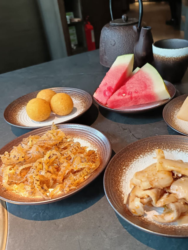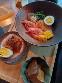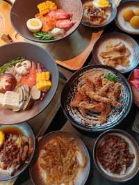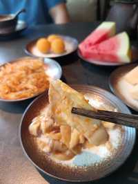 Located in Yuandian, this Taiwanese restaurant boasts a quaint, relaxed atmosphere and a comfortable dining environment. The new [New Taiwanese Set Meal] lunch menu includes an all-you-can-eat "free condiment station." Yipin Haihuang Hairy Crab Noodle Set The noodles are smooth and tender, and the golden hairy crab vermicelli is fragrant. The abalone and shrimp are also included, creating a fresh and umami-focused flavor. Japanese-Style Royal Soup Seafood Noodle Set The broth is sweet and savory, and the clams, fish fillets, shrimp, tofu, shiitake mushrooms, enoki mushrooms, and corn create a refreshing, ocean-inspired dish. Sichuan Crispy Pork The crispy pork is incredibly crispy, tender, and lightly flavored, with no greasiness. The dessert is the red bean tofu pudding, which is sweet and smooth, with a delicious bean aroma. The buffet area offers crispy fish skin and mushroom slices, crispy fried taro balls, and sweet watermelon and cantaloupe. #TaiwaneseHotpot #CoucouHotpot #coucouhotpotk #hotpot #hotpot #hotpot #smallhotpot #HongKongHotpot #HongKongHotpot #lunchset #semi-buffet #SeptemberDestinations2025