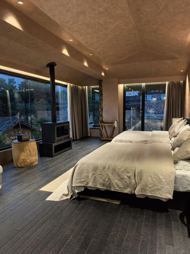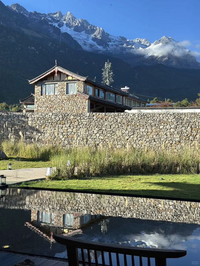 #September2025 This hotel is nestled in the ancient village of Yuhu, facing Jade Dragon Snow Mountain. The moment you enter, you're enveloped by a tranquil and warm atmosphere. A subtle fragrance wafts through the air, instantly bringing you peace of mind and making time seem to slow down. Sitting on the sofa in your room, turning on the aromatherapy diffuser, brewing a pot of hot tea, and gazing out the window at the crystal-clear snow-capped mountains, all fatigue and worries melt away. The hotel's design is incredibly elegant, and the rooms are incredibly spacious. The king-size bed faces floor-to-ceiling windows, and the curtains open to a breathtaking mountain view. Waking up in the morning, you can gaze upon the snow-capped mountains. On a clear day, you can watch the sun set over the golden peaks from your bed. At night, sleeping amidst the ancient village's earthen-tiled houses, surrounded by the snow-capped mountains, is a truly captivating experience! The rooms are also equipped with fully intelligent devices, aromatherapy, and speakers, adding to the ambiance. The service is incredibly thoughtful: breakfast is a generous six-square-shaped spread, afternoon tea is exquisite, and evening tea is served around the fire. The milk tea made by the staff is incredibly delicious! The overall quality, configuration and cost-effectiveness are all super high. If you come to Lijiang and want to immerse yourself in the snow-capped mountains and ancient villages, this is the right choice!