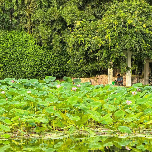 #Zhongshan Attractions Jinzhong Lake Park seems like a paradise, embedded in the heart of this modern city. 🌳As soon as you enter the park, you will be surrounded by lush green grass and shady trees. It is full of greenery, as if you are in a peaceful and tranquil landscape painting. There is a vast lake in the center of the park. The lake surface is endless, like a huge mirror embedded in this green environment. The lake is full of vitality, with lotus flowers blooming, creating a pleasant pond scene. 🌺There is also a winding trail not far away, with shady camphor trees planted on both sides, forming a natural corridor with green shade, attracting some clever wild birds to fly and play in the woods.