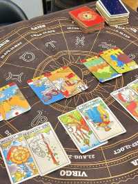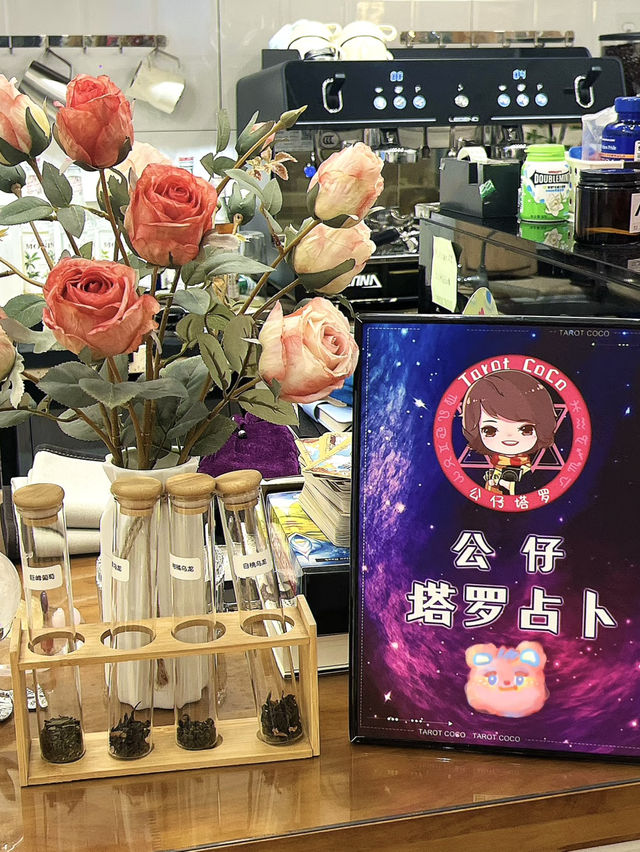 #ZhuhaiInfinityPool: Afternoon tea with astrology readings. The presentation is stunning! The taste is equally impressive, and the experience is fantastic. Friends from Shenzhen and Hong Kong visiting Zhongshan should definitely give it a try. I bought a single set and received a free simple divination, which I personally found quite accurate (results vary). The coffee and drinks are excellent, the presentation is creative, and the photos are fantastic. I personally think the croissant (the menu says sandwich) is delicious. It's light, so please note that you want less sauce. This is a small shop full of stories. Because the owner is a renowned tarot reader, this shop is destined to hold many stories. Shop Name: Doll Magic Bakery Address: 81 Xinghua Street