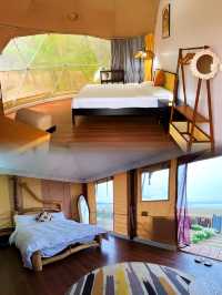 OMG, you guys😍 I've discovered a newly popular spot in the Pearl River Delta — the "ONLYONE Island Diary" campsite at Mutouchong Beach, Sanzao Town, Jinwan District, Zhuhai. Here, you'll find pristine blue skies 🌊 golden beaches 🏖️ and a strong Southeast Asian vibe, creating the perfect holiday atmosphere! 🏕 Beachfront Tent Rooms The tents are located right on the beachfront, just steps away from the ocean. With 180° unobstructed views, watching the sunset is absolutely breathtaking 🌅 If you're lucky, you might even encounter the magical "blue tears" phenomenon at night (caused by bioluminescent algae) ✨ The starry sky and glowing waves intertwine, creating a dreamlike scene~ Plus, there's a 24-hour attentive butler service, air conditioning, charging facilities, and toiletries, so you don't have to worry about a thing! 🍱 Choose from 3 Double Set Meals • Beach BBQ Set: Freshly cut Wagyu beef, garlic-flavored pork belly, Taiwanese cuttlefish sausage… sizzling with deliciousness, paired with iced drinks and a bonfire 🔥 for the perfect ambiance! • Hotpot Tea Set: Enjoy tea brewed over charcoal, roasted oranges, persimmons, and mochi. This set embodies the warmth of autumn and winter 🍊 • Seaside Afternoon Tea Set: Delicate desserts paired with hand-drip coffee or fruit tea. Face the sea and enjoy a relaxing, slow-paced afternoon ☕ 🎡 Free Access to Camp Activities Sunset concerts, bonfire parties, movie screenings, karaoke — enjoy yourself however you like! A 10-minute walk will take you to Hedao Park, where you can explore "Monet Garden"-style farmland landscapes and experience intangible cultural heritage crafts~