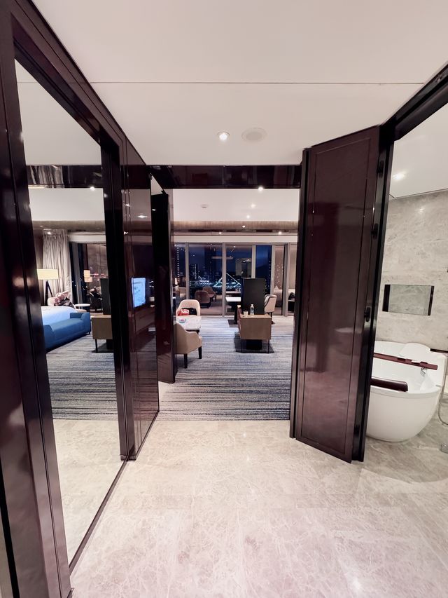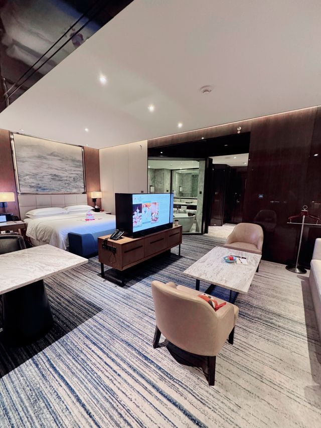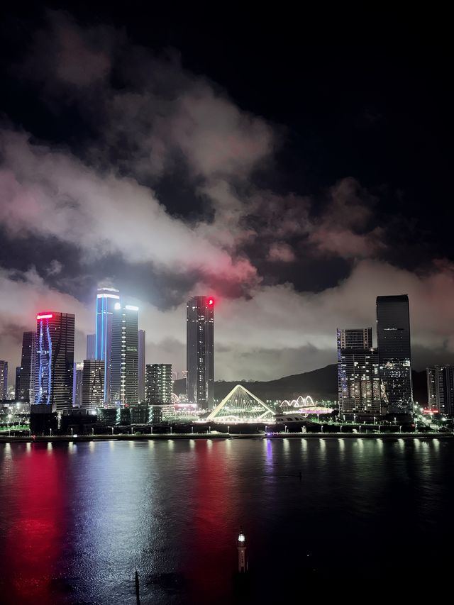 Zhuhai Sheraton Hotel The hotel lobby is very unique, featuring traditional Chinese architectural design. The staff are also very polite, attentive, and welcoming. The Macau Sea View rooms offer stunning night views of the Macau Bridge and Macau Tower. The only downside is that the hotel is a bit dated and located in a luxury residential area, away from many shopping malls or tourist attractions. However, if you're looking for a balcony with a sea view and a beautiful view, this hotel is highly recommended.