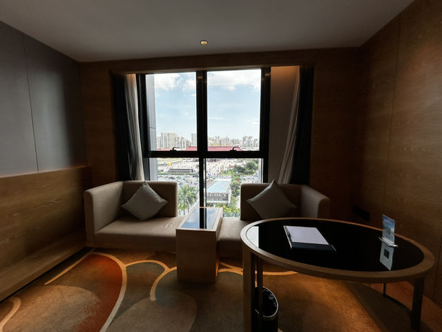 This time, I stayed at the Zhuhai Golden Leaf Crown Hotel. It's just across the street from the Gongbei Port, making it very convenient. It's also adjacent to the Zhuhai Gongbei Port Central Business District, and the surrounding environment is excellent. The hotel lobby is on the 11th floor, and the front desk staff were patient and polite. I requested a room facing the Gongbei Port, and I especially commend Ms. Shushu for her patience in reminding me that the room might be a bit noisy. They were considerate of the guests. The room was clean and well-maintained, and I especially loved the double sofas, which allowed me to enjoy the bustling scenery outside the window. The bathroom had separate wet and dry areas, and shower gel, shampoo, and conditioner were provided. This thoughtfulness deserves praise. #ZhuhaiItinerary