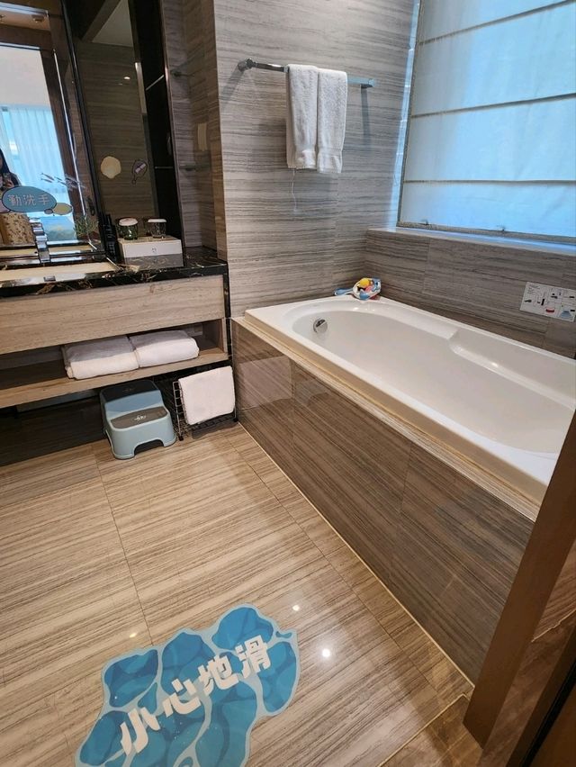 Zhuhai self-driving experience 🚗🚗 Accommodation chose Zhuhai Huafa · Convention and Exhibition Executive Apartment Hotel (Hengqin Port Cross Gate Huafa Commercial City Store) 😍😍 This is an excellent accommodation option for family travel. The hotel is conveniently located in Area B, 1663 Silver Bay Road, Wan Chai, Xiang Chau District. This stay was an Ocean Discovery-themed two-bedroom suite, which is spacious over 1,000 square feet and features a panoramic terrace and large living room. The suite has created a special fun place for children ⛺️🎠🛝🎡♨️, the living room is equipped with Lego blocks, slide, small desk and cute house for children to have fun. The room design shows parent-child care everywhere, not only has a comfortable bathtub 🛀🤹🏻 ♀️, but also has children's bath toys, special toothpaste set, small toilet and gentle shower gel. The environment is clean and comfortable, with charming views from the terrace. Priced at about HK$724 for a two-bedroom suite with ample space and complete facilities, it is definitely the first choice accommodation for families visiting Zhuhai. #Zhuhai