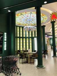 #September2025 Wandering through the Port Plaza shopping mall, my eyes were instantly captivated by the breathtaking atrium—a dazzling ❤️🧡💛💚💙💜 space, a streamlined rainbow ribbon suspended in the dome, like a stream of rosy clouds. The sightseeing elevators, cascading through a rainbow of hues, ascended and descended, immersing the entire space in a dreamy shimmer of light and shadow. Even more surprising, the mall's walls cleverly incorporate the history of the Hong Kong-Zhuhai-Macao Bridge: faded blueprints, heavy welding tools, and precious footage of the undersea tunnel docking. These relics, bearing the memory of a century-old project, contrast beautifully with the neon lights of the modern mall, as if weaving the epic epic of a long, sea-crossing rainbow into the everyday scenery of this rainbow palace.