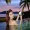 The holiday feeling is full against the backdrop of palm trees! Travel to Santorini on the sea in a second! !