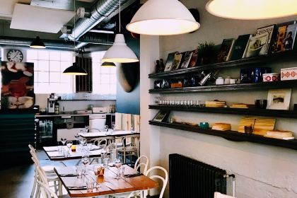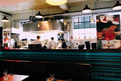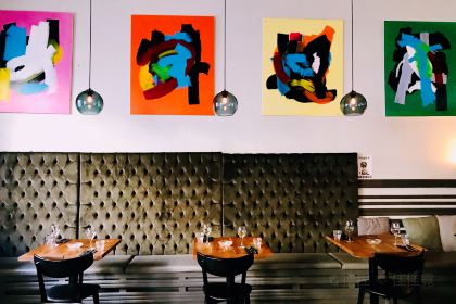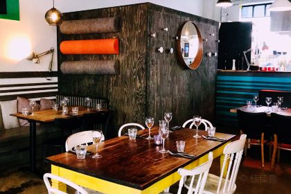 Highlights: A stylish and relaxed bar and restaurant with a clean, vibrant color palette