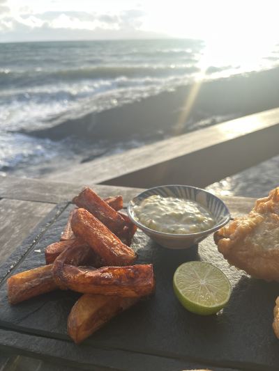 Great food and amazing views! Love this place, both on the beach and on the rocks