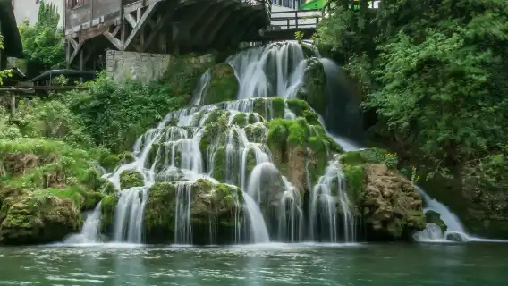 Encounter a crescent-shaped secret place, where the blue-green pool is as clear as a gem, the waterfall is covered with silver yarn, and the reflections are interwoven into a dreamy symmetrical illusion.