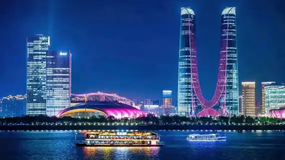 Premium route connecting Xixing Bridge and Olympic Sports Center "Lotus", offering a panoramic view of Hangzhou's dazzling nightscape where ancient and modern blend.