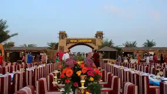 Live BBQ dinner with vegetarian and non-veg options :Tanoura, Belly Dance & Fire show entertainment