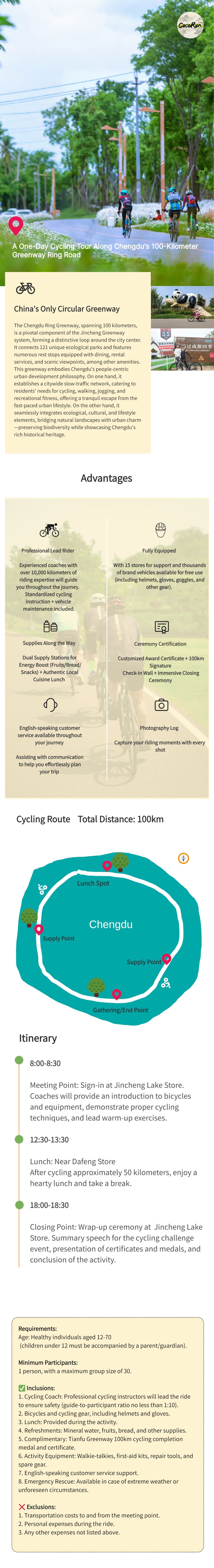 2. Please ensure you are in good health, not sick, and do not have any diseases including but not limited to infectious diseases, heart disease, high blood pressure, cardiovascular and cerebrovascular diseases, respiratory diseases, mental illness, severe anemia, or other conditions unsuitable for strenuous exercise. Additionally, those in the recovery period from non-major or medium surgeries, individuals with mobility impairments, pregnant women, or others with conditions unsuitable for cycling activities should not register.
